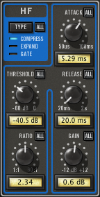 Jedes Band ist somit ein eigenständiger Kompressor (wahlweise auch als Expander oder Noise-Gate einsetzbar) mit den allen notwendigen Parametern.
