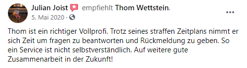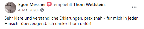 "Thoms Workshop hat mir die Augen geöffnet und das Training hat mir einen extremen Mehrwert gegeben! Ich kann's hur jedem empfehlen"