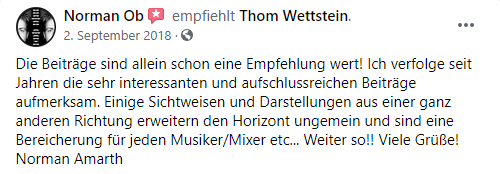 «Du hast uns mit Deiner Arbeit sehr überzeugt. Unser nächstes Album mastern wir garantiert wieder bei Dir »